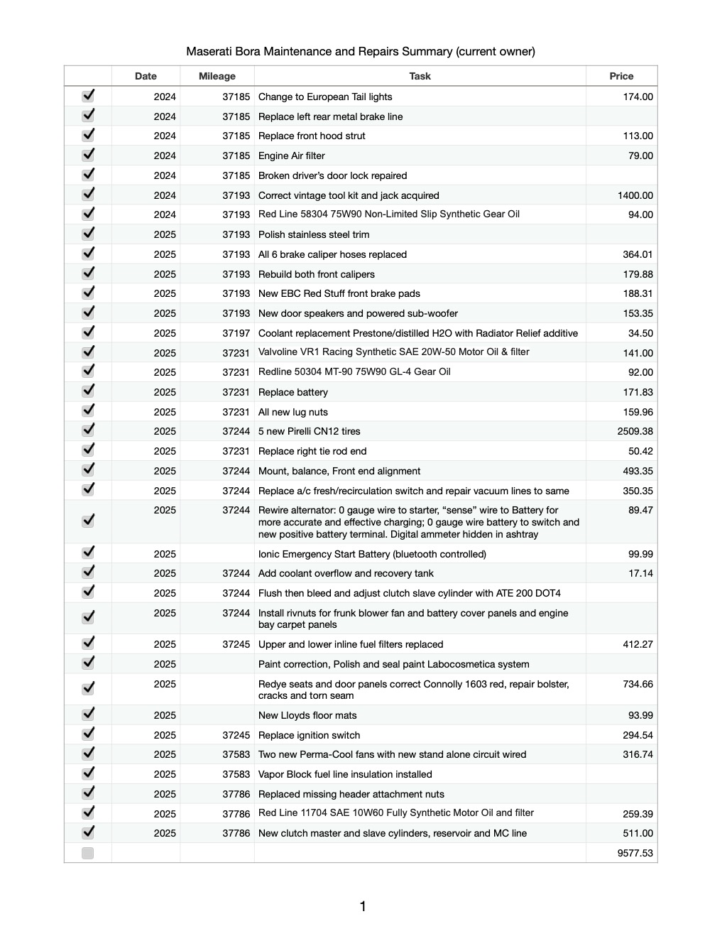 Summary of work done by current owner